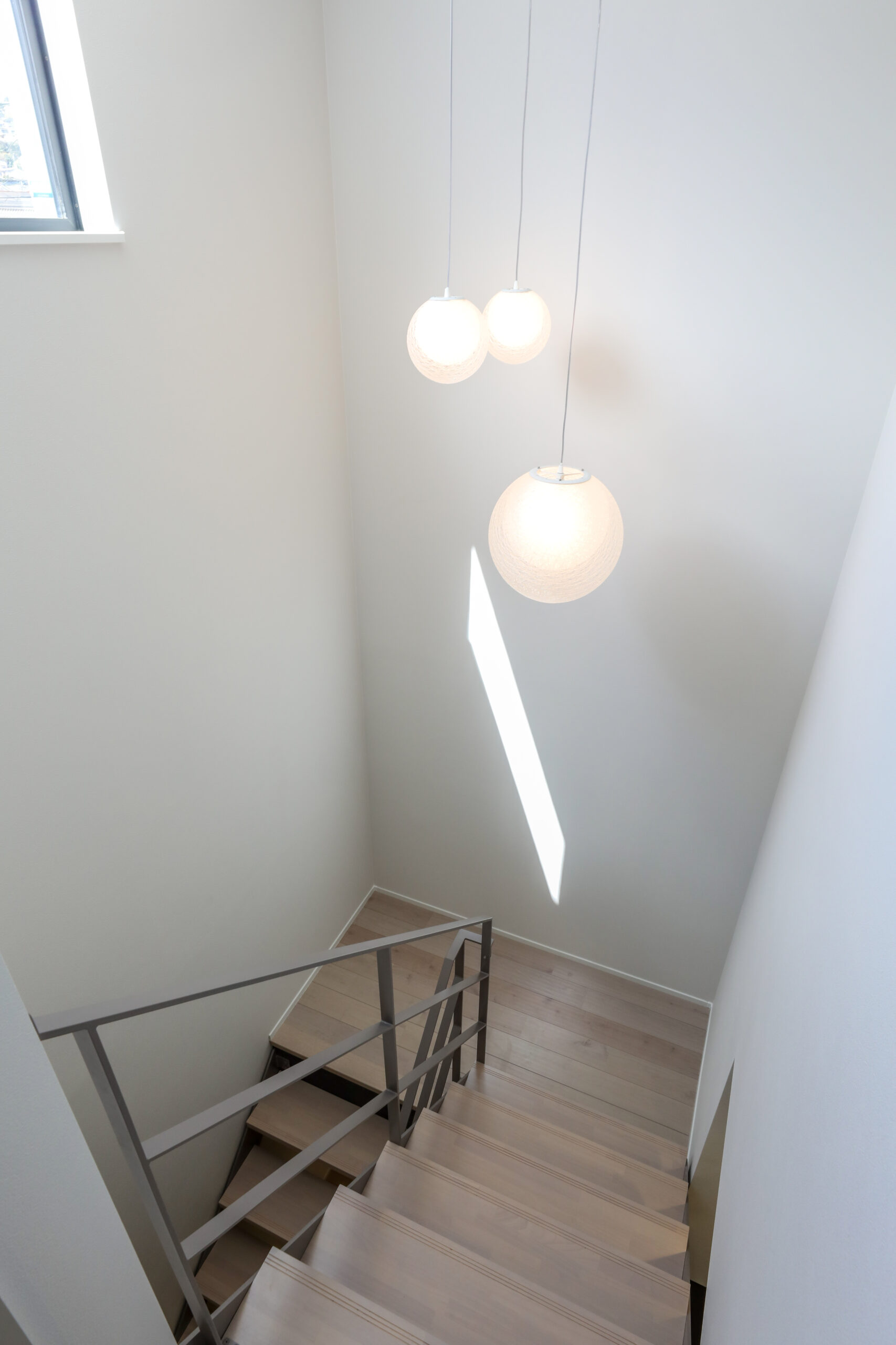 階段まわりは光が抜けるデザインで、上階へ向かうたびに気分まで軽くなるような開放感。